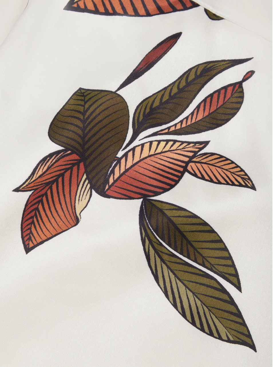 El estampado sutil de las hojas le da al vestido una apariencia elegante y, al mismo tiempo, natural.
