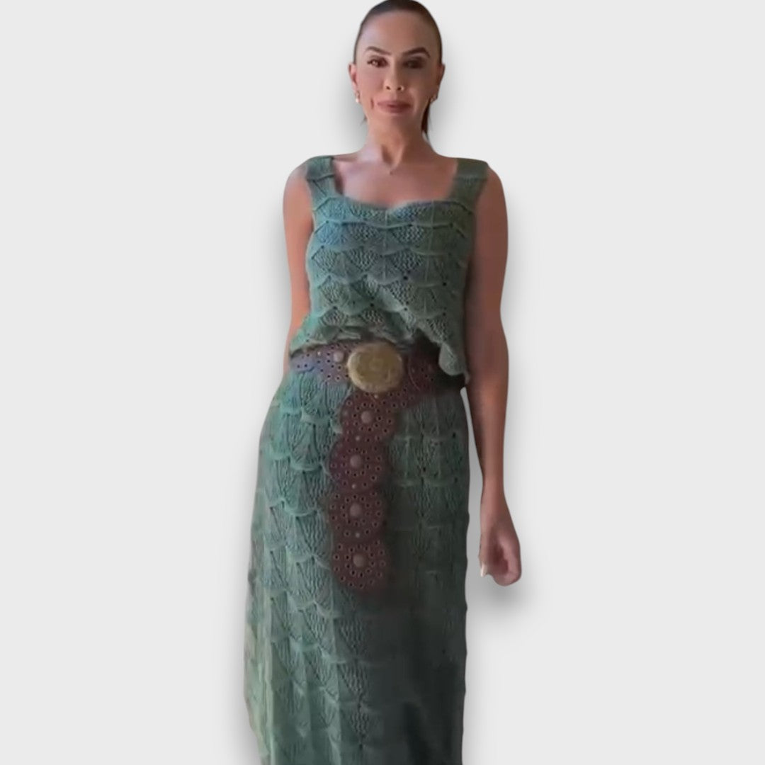 Lunara – Conjunto de dos piezas con diseño de tejido en la parte superior y la falda